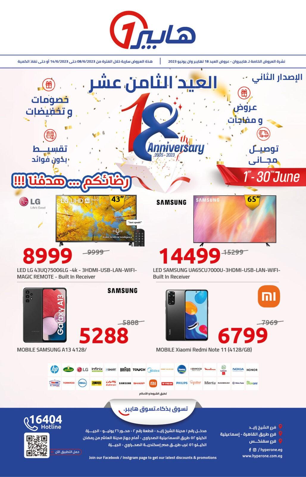 وفي آخر إصدار لـ مجلة عروض هايبر وان، أعلنت عن بداية عروض عيد ميلاد هايبر وان من 8/6/2023 إلى 14/6/2023، وإتاحة التقسيط حتى 18 شهر بدون فوائد، من خلال أفضل الأسعار والعروض، توصيل الأجهزة المنزلية والالكترونية لكل المحافظات.