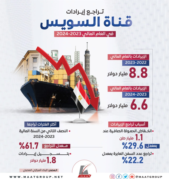 إنفوجراف.. إيرادات قناة السويس تتراجع خلال العام المالي 2023/2024