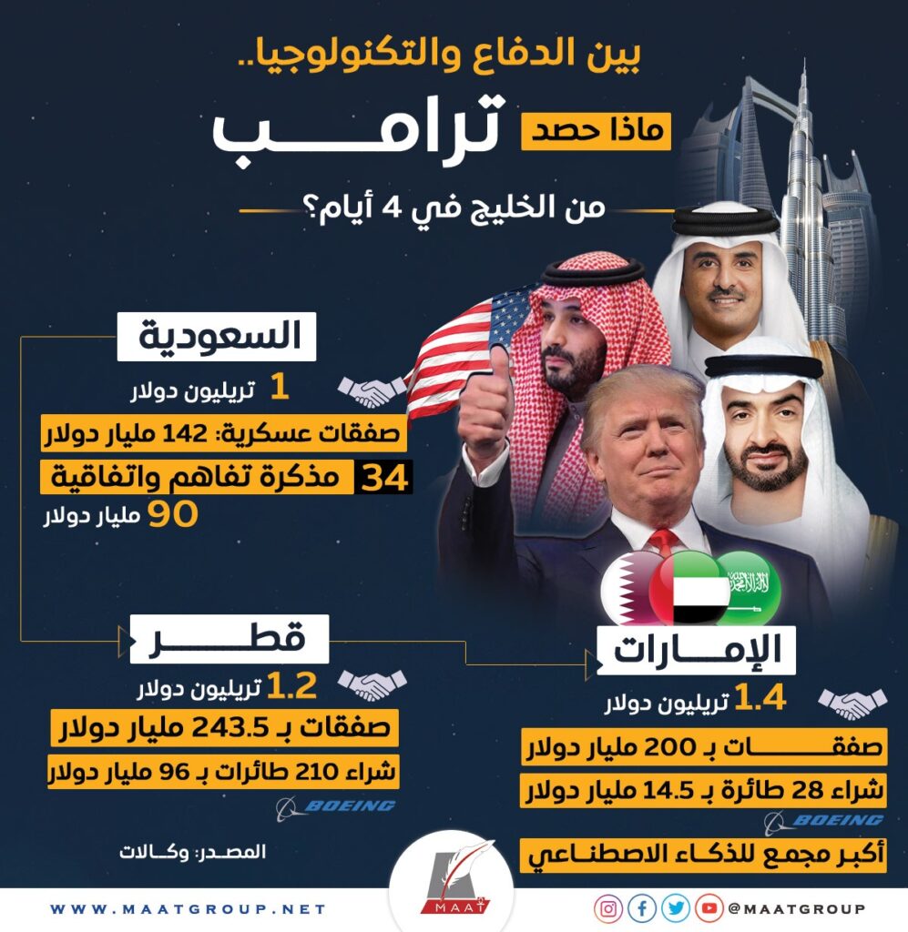 الدفاع والتكنولوجيا .. ماذا حصد ترامب من الخليج في 4 أيام؟ | إنفوجراف