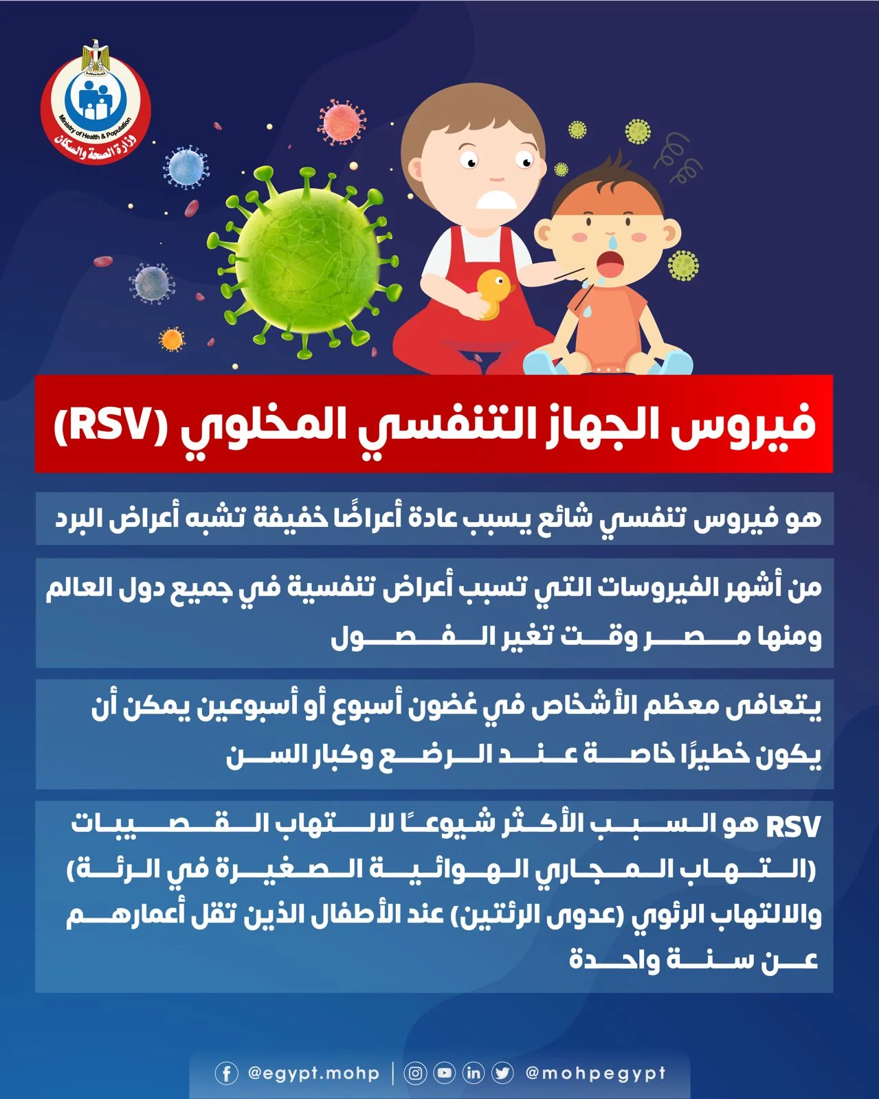 وشدد «الوزير» على أنه في حال ملاحظة صعوبة في التنفس أو أي أعراض طفلك يجب التوجه به إلى المستشفى على الفور، وفي حالة تأكد إصابة طفلك بالفيروس يجب منع اختلاطه مع أطفال آخرين في المنزل أو الحضانة لحمايتهم من الإصابة بالعدوى.