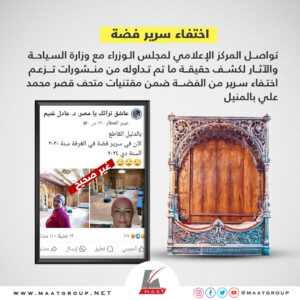 وأعدت «ماعت» إنفوجراف يوضح تفاصيل ما جاء في بيان الحكومة المصرية للرد على مزاعم اختفاء سرير من الفضة، ينشره موقع «مضمون» بالإضافة لتفاصيل وقصة السرير الفضي، كيف بدأت الأزمة؟.