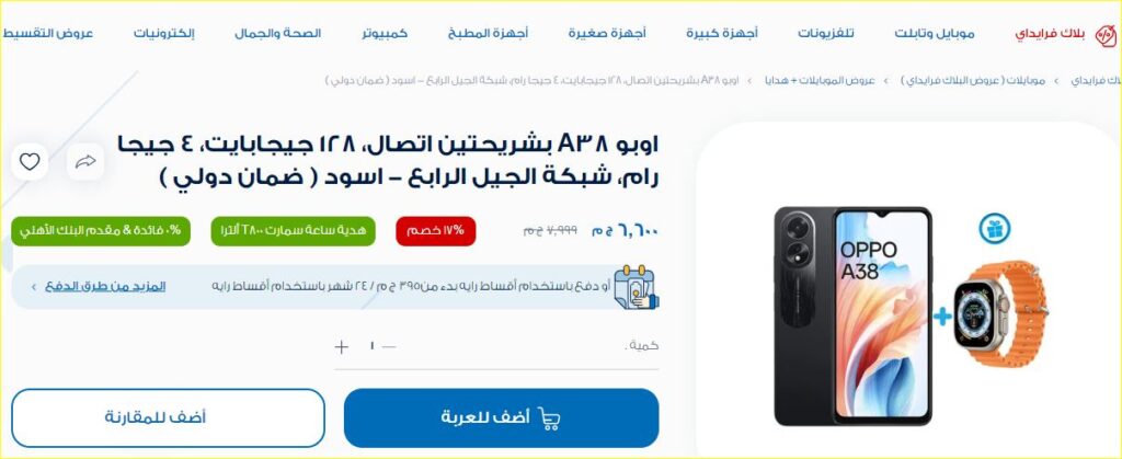 اوبو A38 بشريحتين اتصال، 128 جيجابايت، 4 جيجا رام، شبكة الجيل الرابع – اسود ( ضمان دولي )