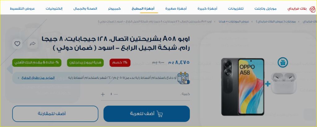 اوبو A58 بشريحتين اتصال، 128 جيجابايت، 8 جيجا رام، شبكة الجيل الرابع – اسود ( ضمان دولي )
