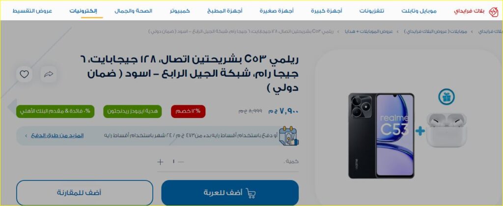 ريلمي C53 بشريحتين اتصال، 128 جيجابايت، 6 جيجا رام، شبكة الجيل الرابع – اسود ( ضمان دولي )