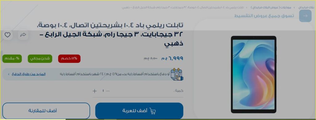 تابلت ريلمي باد 10.4 بشريحتين اتصال، 10.4 بوصة، 32 جيجابايت، 3 جيجا رام، شبكة الجيل الرابع – ذهبي