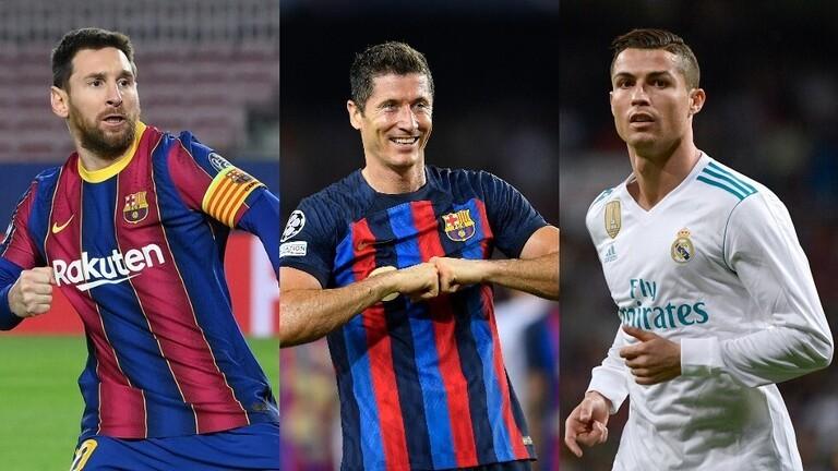 وتفوق روبرت ليفاندوفسكي (32 عاما) الذي انضم إلى صفوف برشلونة خلال الميركاتو الصيفي الماضي، قادما من فريق بايرن ميونيخ، على نجوم مثل قائد “البلوغرانا” السابق، الأرجنتيني ليونيل ميسي، مهاجم باريس سان جيرمان الفرنسي الحالي، والنجم البرتغالي كريستيانو رونالدو، الهداف التاريخي لفريق ريال مدريد، ومهاجم فريق مانشستر يونايتد الحالي، وغيرهما.