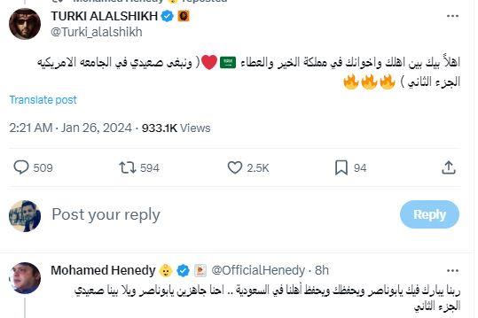 وبالمناسبة بستغرب جدا من…— Mohamed Henedy 👶 (@OfficialHenedy) January 25, 2024